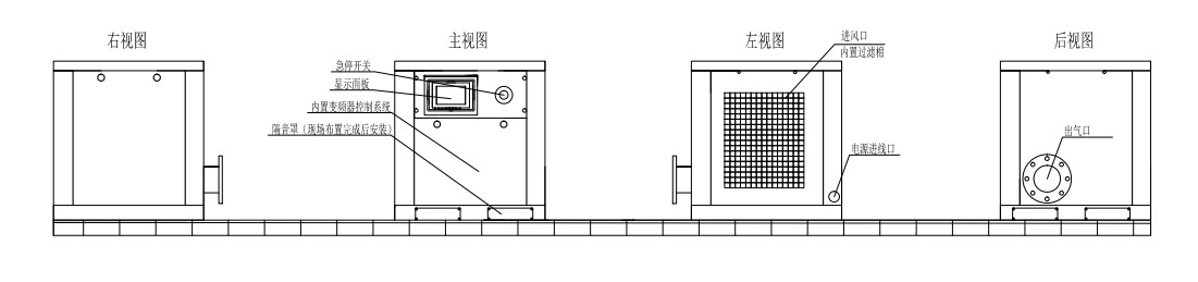 整機(jī)體積小,安裝方便,優(yōu)化了轉(zhuǎn)子動力學(xué)結(jié)構(gòu),噪音和震動得到極大抑制,機(jī)器運(yùn)行時噪聲等級<80dB(A)。高效、寧靜、環(huán)保,安裝靈活而簡便。